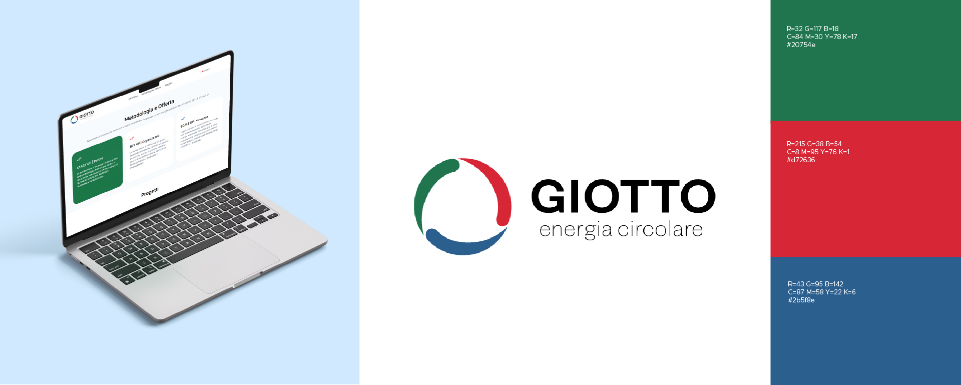 The visual identity and payoff are inspired by the concept of circularity, creating a very strong link between the brand name (Giotto) and the business model.
